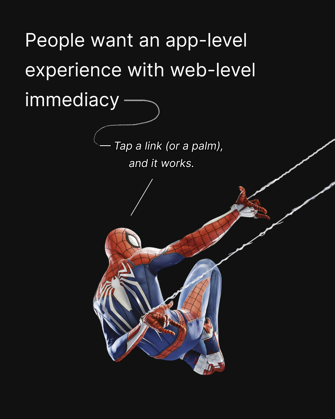 These slides trace the shift from app stores and downloads to web-level immediacy – where tapping a link gives you an app-level experience without friction.